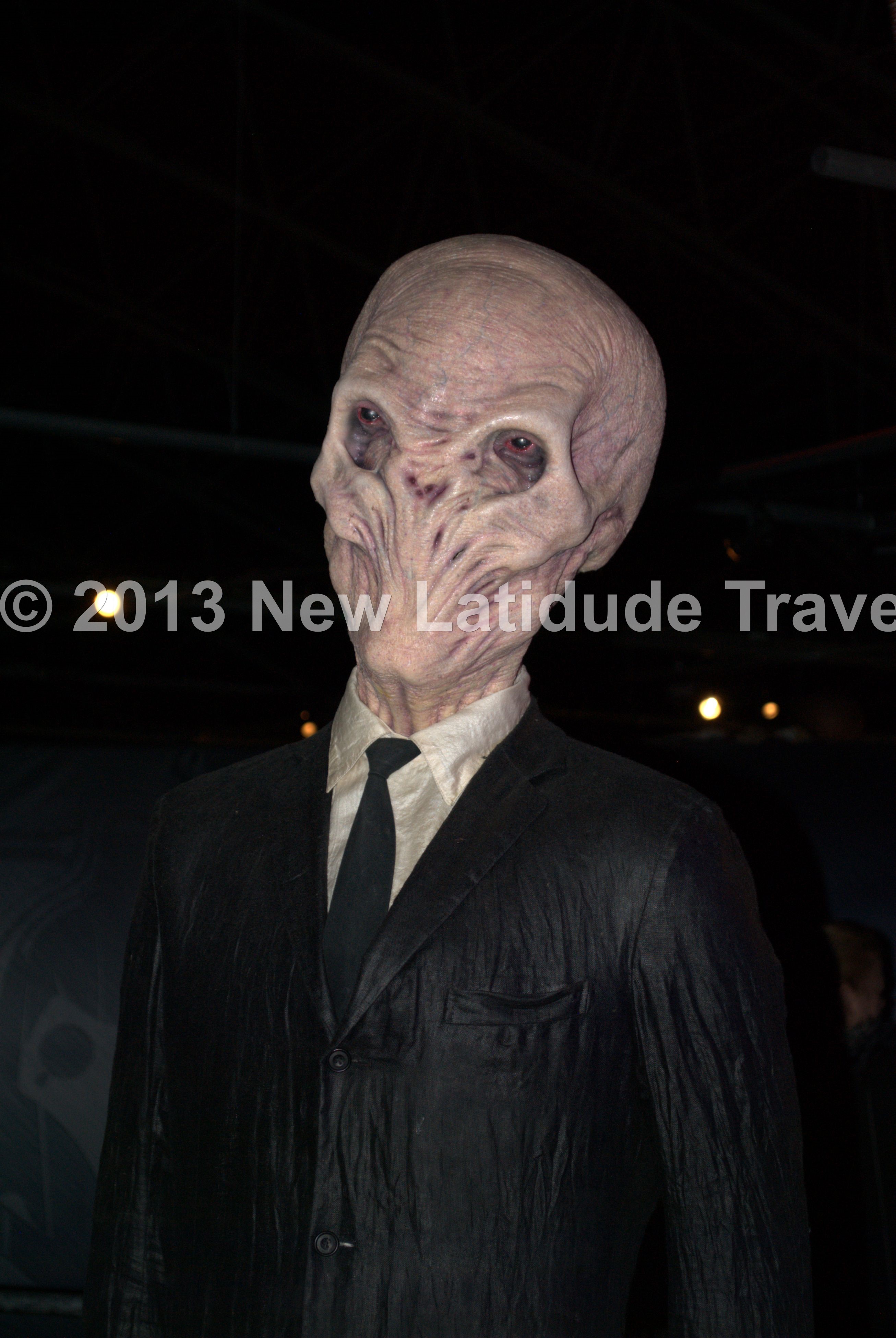 Assuming your group successfully helps to save the day, you will exit into the exhibit portion. This is a large, two-story area with a whole host of actual props and costumes from the series: costumes from each of the eleven Doctors (mostly original, some reproductions); various sonic screwdrivers; companion costumes; the 5th and 10th/11th Doctors’ TARDIS; numerous Daleks; other creatures and characters like the Weeping Angels, The Silence, Cybermen, to name just a few. A couple of small side exhibits illustrate the process of making prosthetics and costumes.