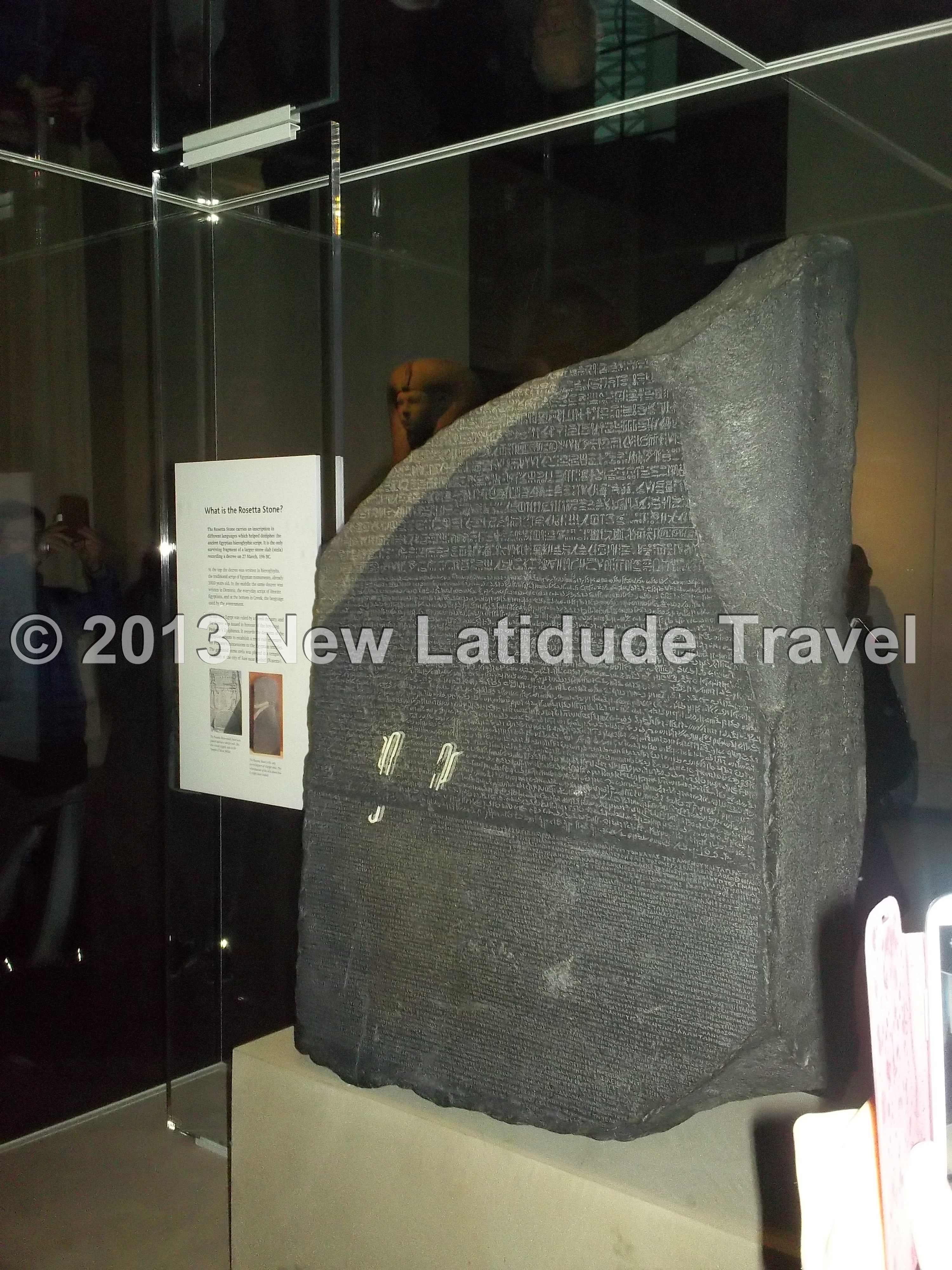 We arrived in London after lunchtime and planned to stop by and see what we could that afternoon/evening at the museum, and come back the day after to spend more time. I made the mistake of assuming that my wife and daughter wouldn’t mind a brief walk in some light rain as we made our way to the museum from the underground stop closest to it. Actually had it been light rain that would have been fine, but it turned heavier than forecast and I was in the doghouse by the time we arrived. Despite this, it’s hard not to have your mood pick up walking up to important artifacts like the Rosetta Stone.