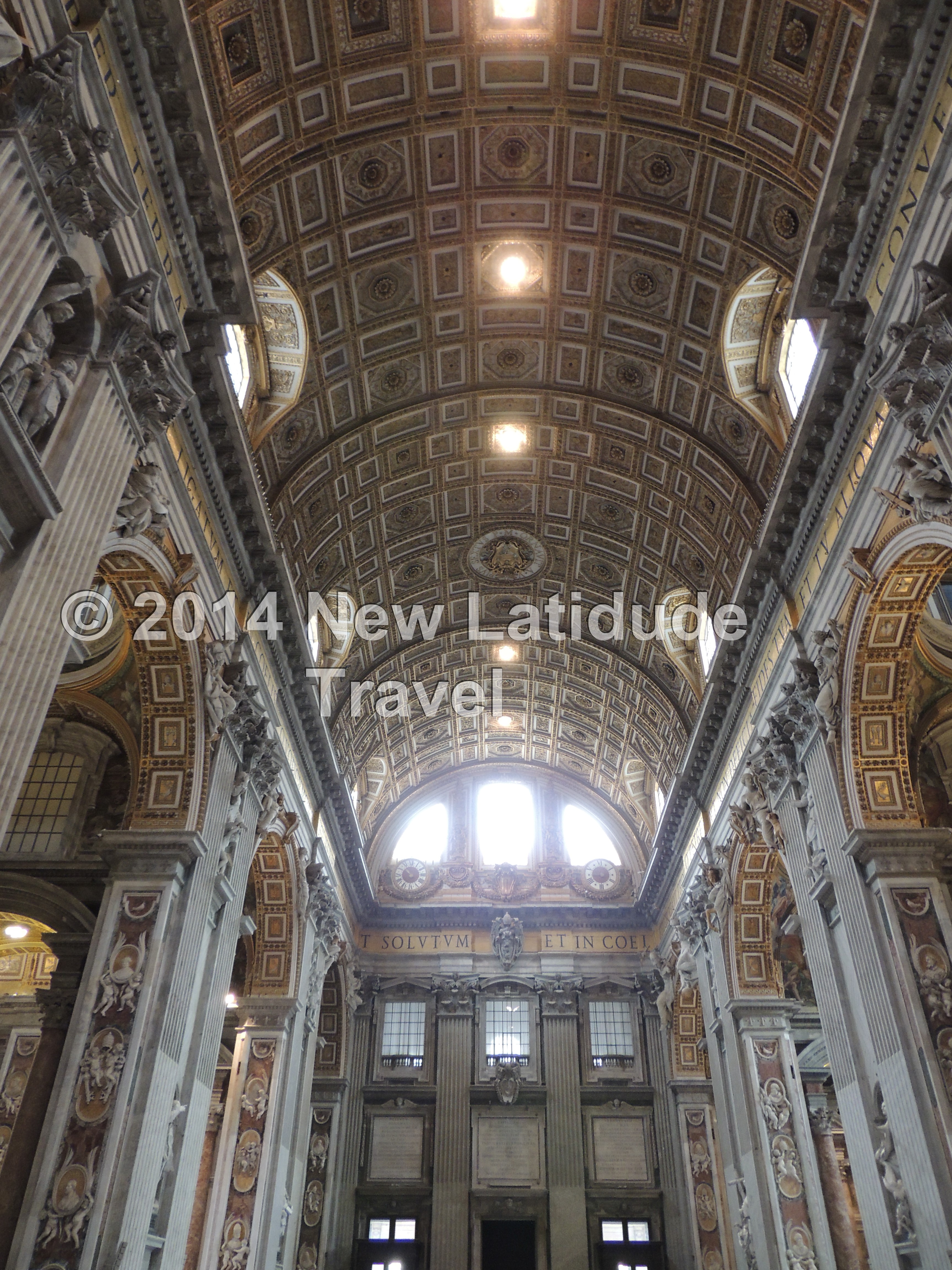 St Peter’s Basilica is enormous! Yet it doesn’t always feel that big inside as many design elements serve to create a more intimate visual feeling. But if you stop and just slowly take it in, your mind starts to gradually realize the real scale of it all. The structure was begun in 1506 to replace the old 4th century basilica. Some 120 years later it was finally complete. Imagine what folks in the 16th and 17th centuries thought of this!