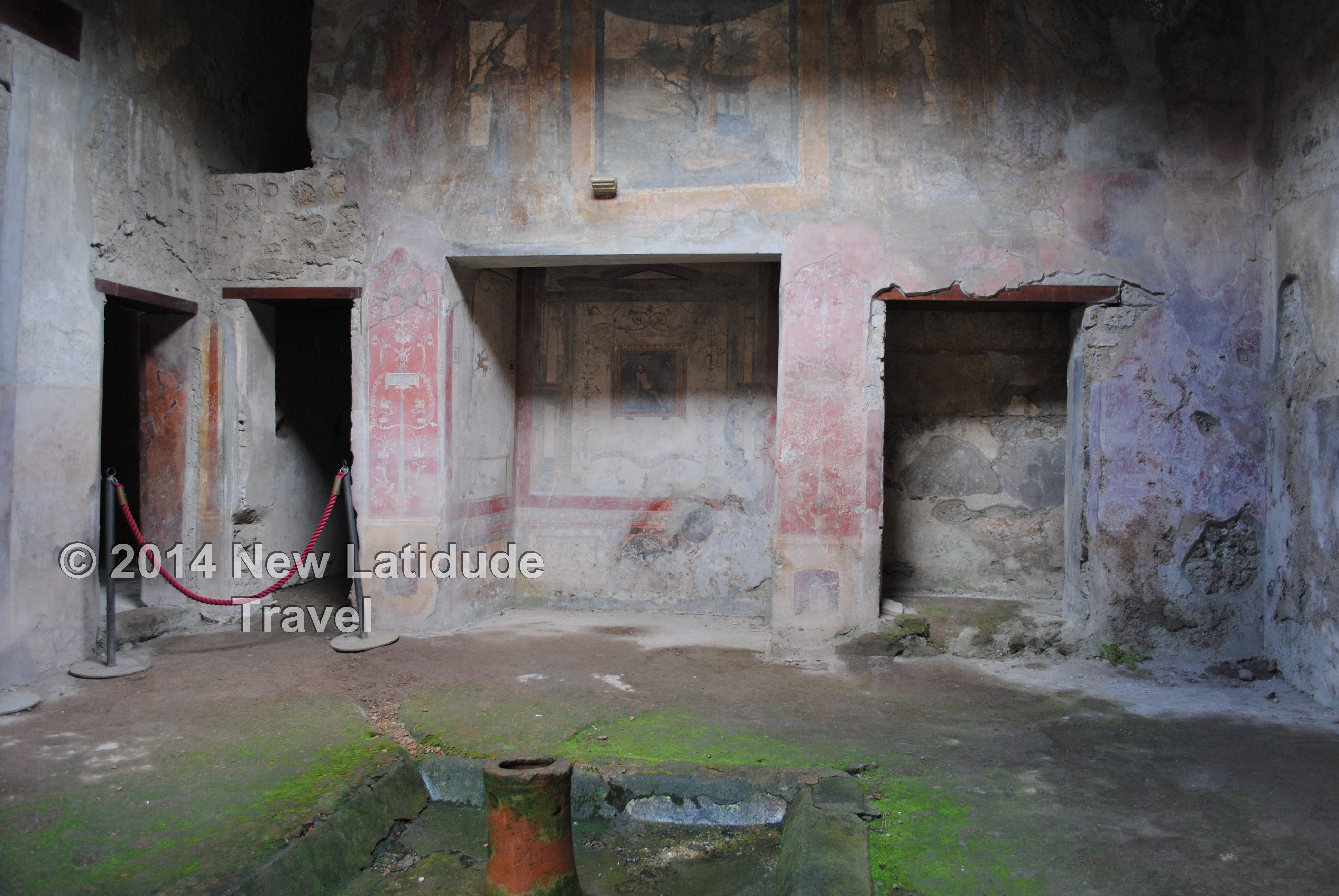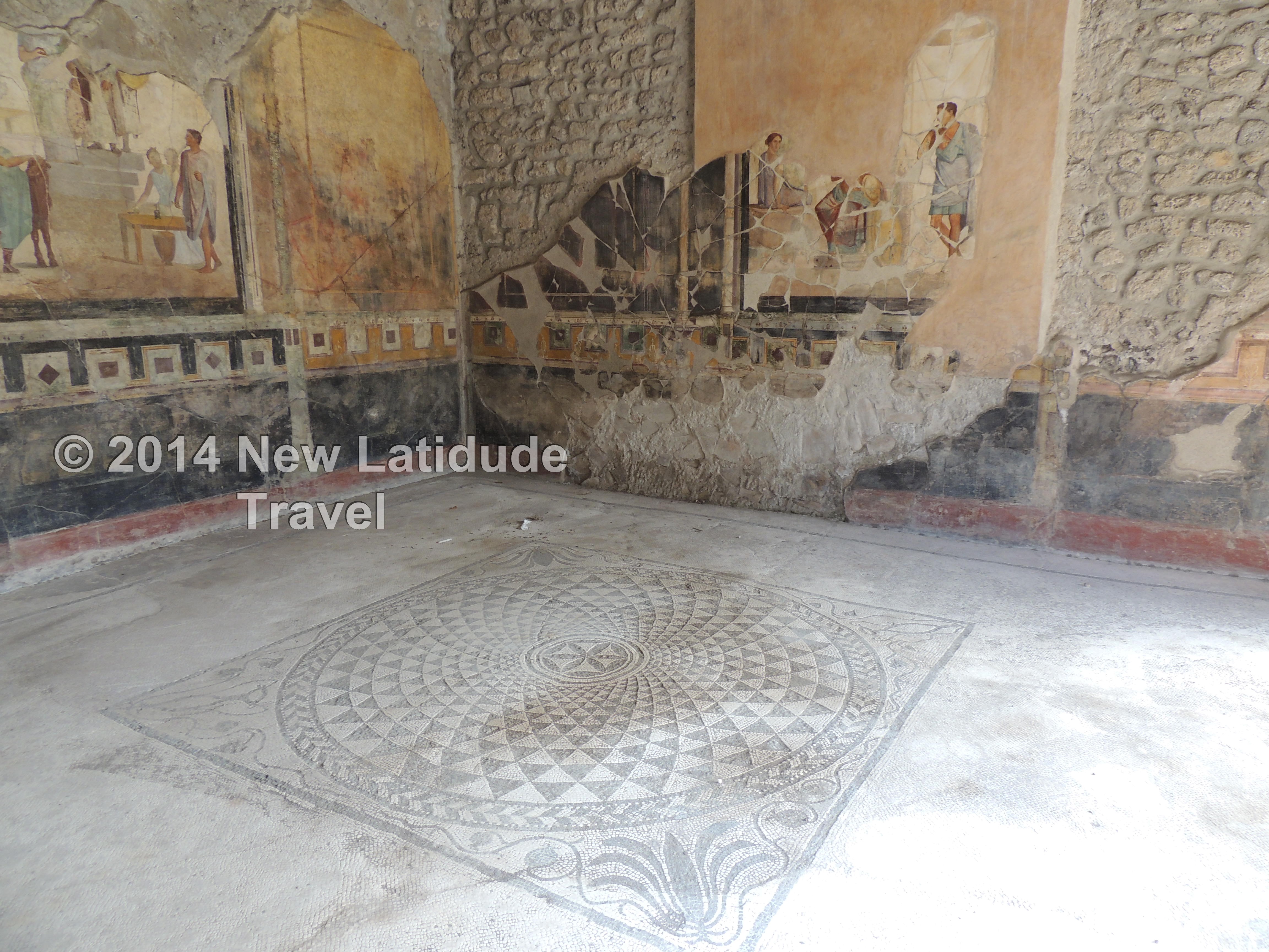 In the ruins of Pompeii there are a range of structures from the small dwellings of its poorer residents to the massive houses of the wealthy. Amazingly the detailed decorations of the houses – fine mosaic flooring and fresco interior walls – remained intact after the eruption. These few photos don’t really do justice to seeing them in person, but I hope you’ll enjoy…