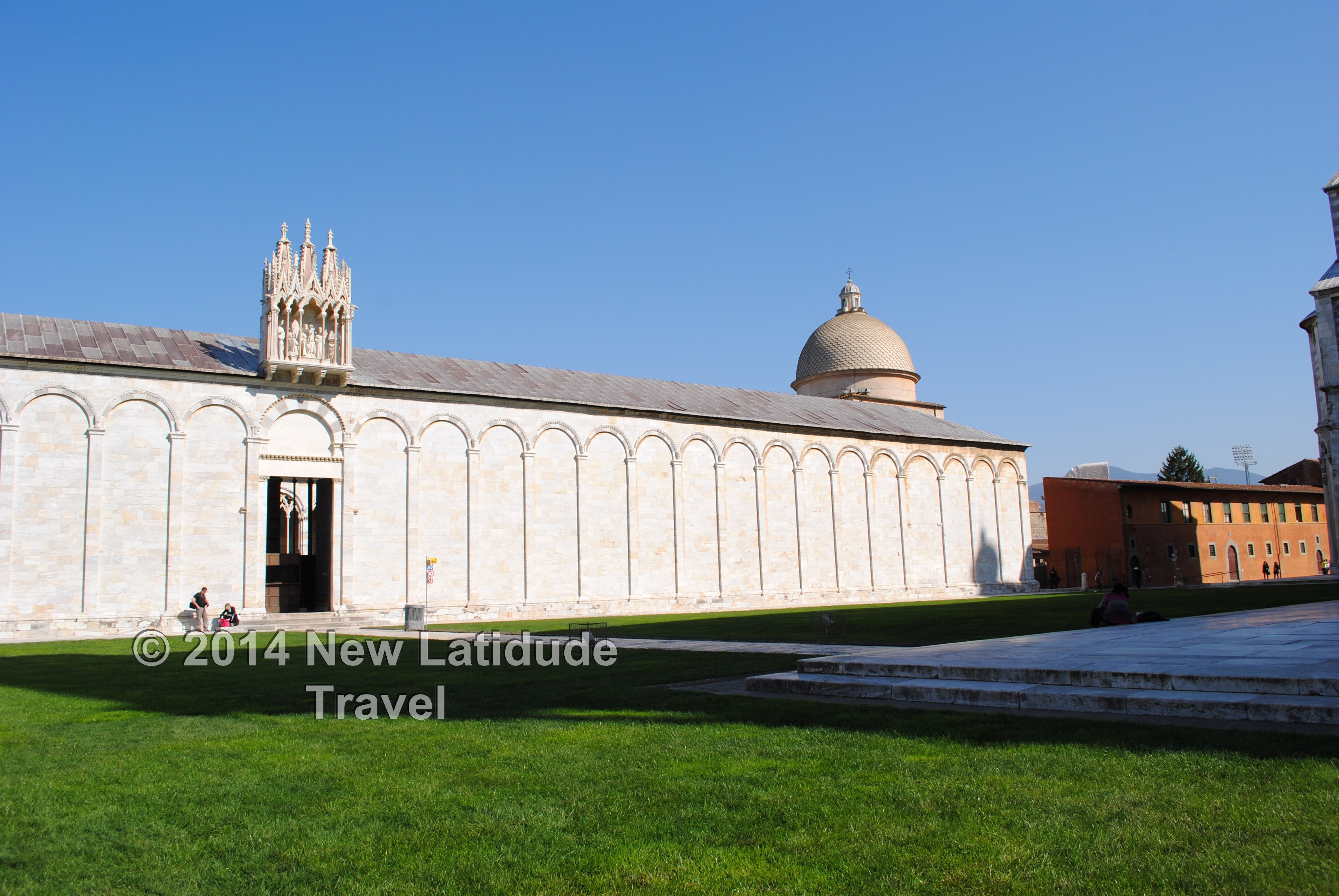 Believe it or not, there is more to see in Pisa’s cathedral square than just the famous tower. My personal favorite is the Camposanto (“holy ground”) – a large Gothic cloister burial ground constructed in 1279 around soil brought back from Golgotha, the site of Jesus’ crucifixion. The outer walls of the Camposanto are fairly plain on the outside but is beautiful on the inside. Despite this, it seems to draw relatively few visitors compared to the masses snapping photos of the Leaning Tower.